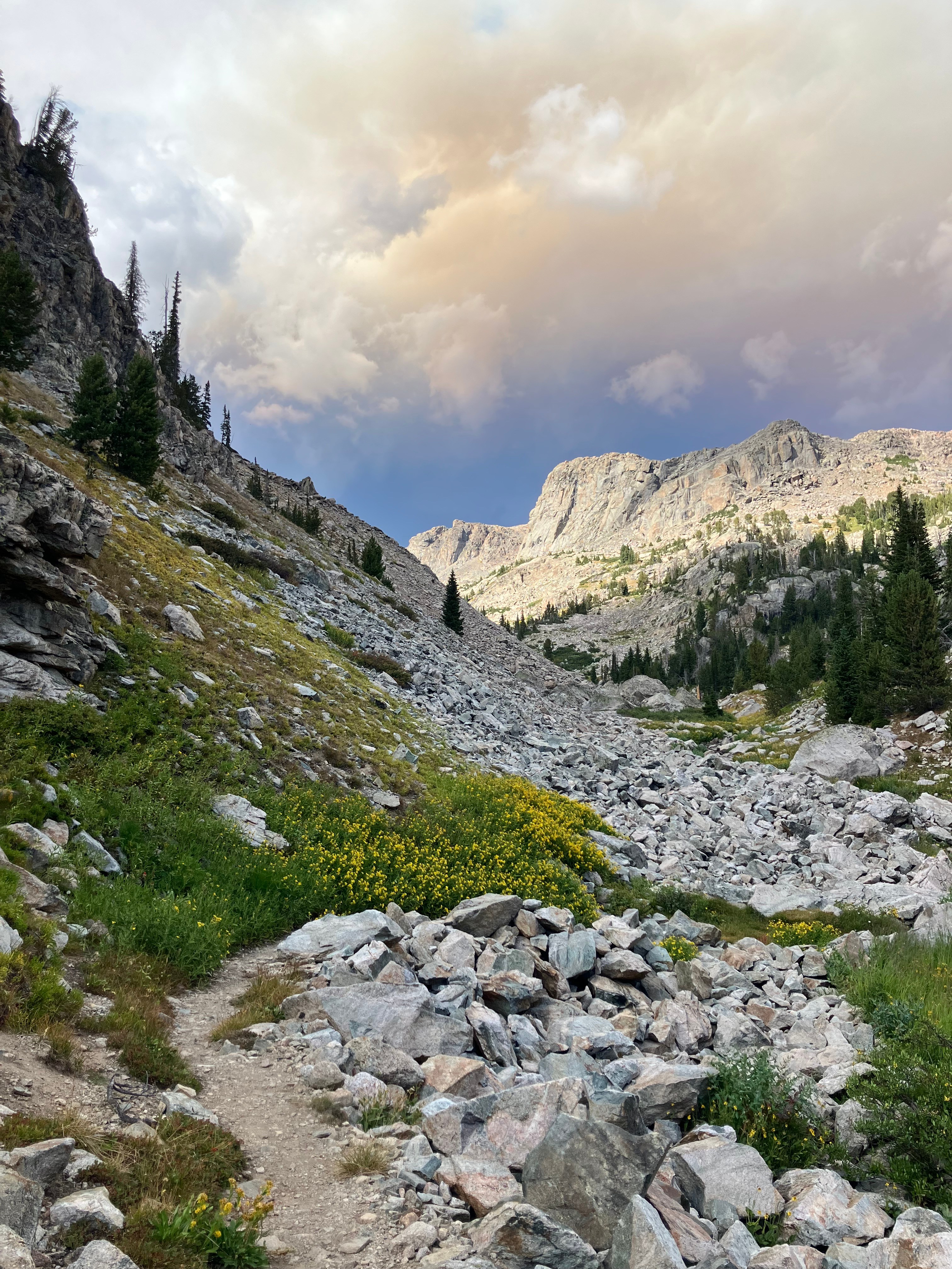 Wow! This segment has been anything but boring! You seem to have made really good decisions all along the way, yes we’ll keep going and won’t just drive to Colorado, no I won’t do the Knapsack Col alternative route. Aside from the storm and a bit of smoke, it all seems to have paid off well. The pictures are, of course, gorgeous. The first one is beyond stunning. New career path? I noticed that you are wearing a ring….Did you find yours or is that a new one?